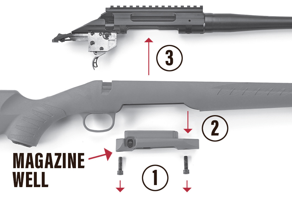 (The following procedure assumes a new rifle with the bolt removed).
