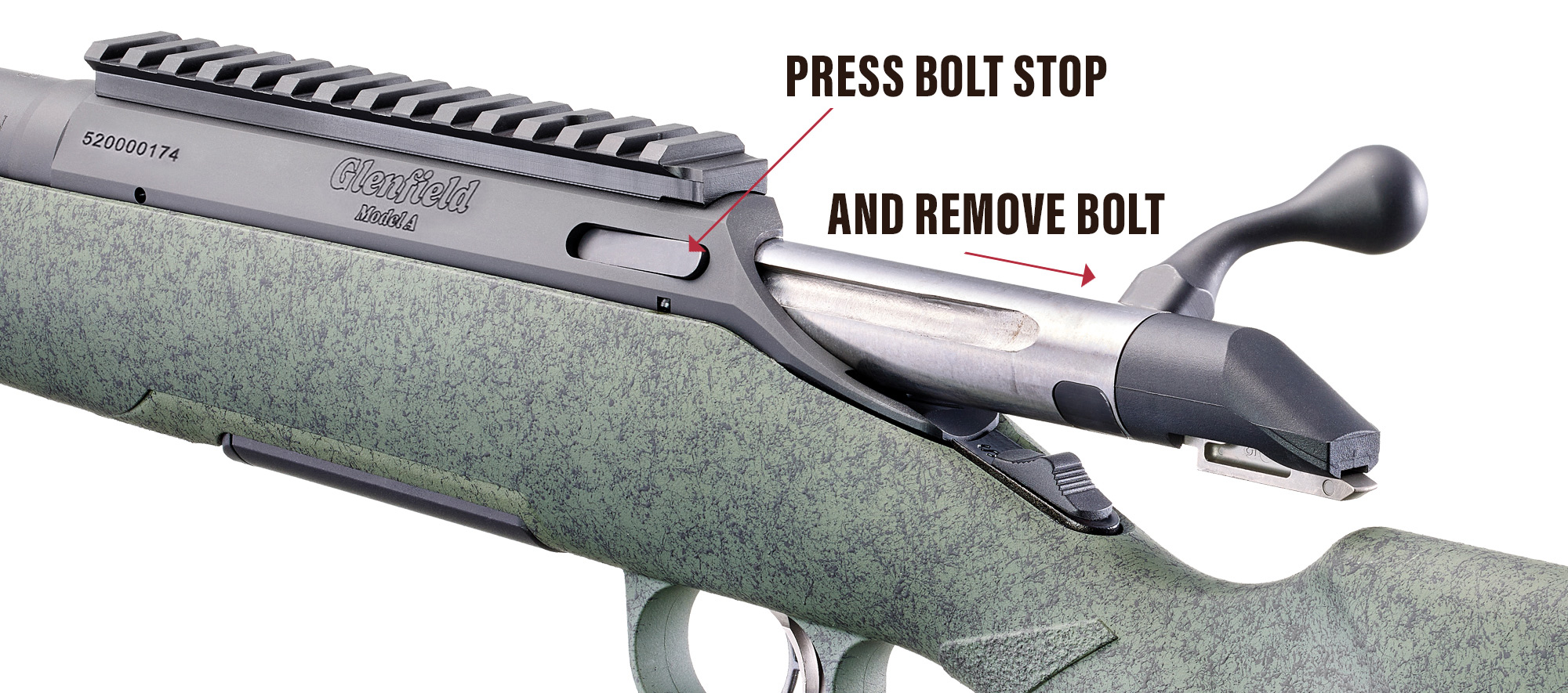 - Open the action completely by drawing the bolt fully to the rear.