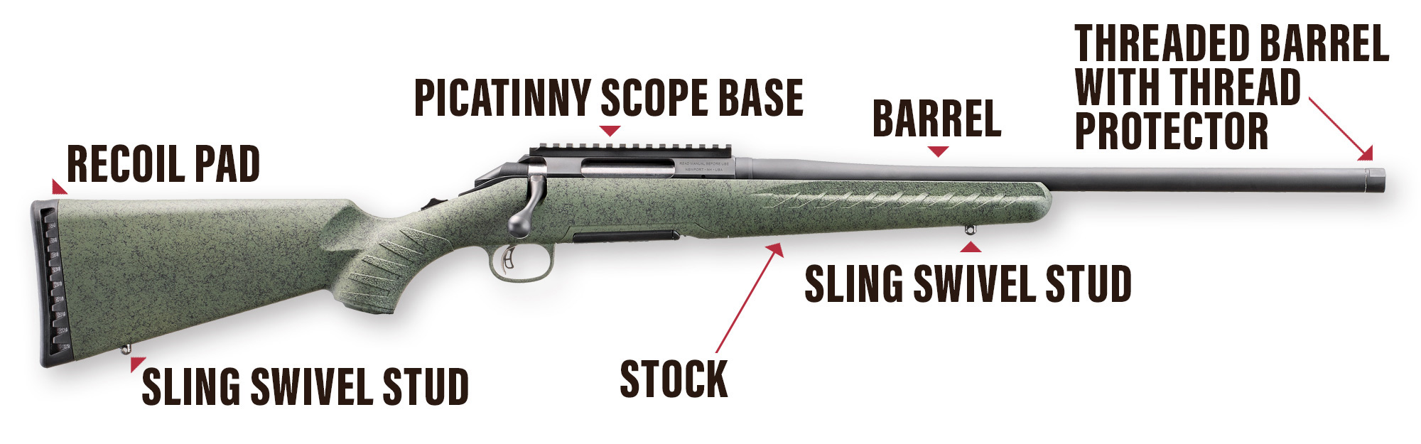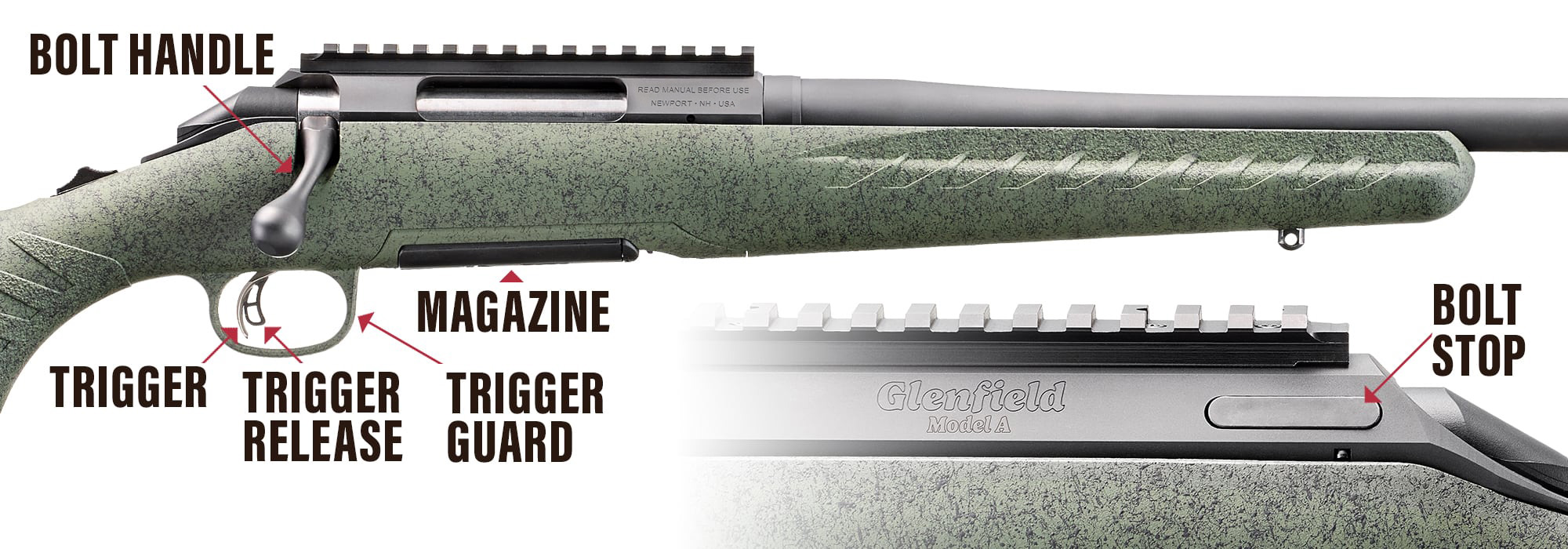 Model A rifles are offered in a variety of colors and configurations. The images here and those used throughout the manual are representative and meant for illustrative purposes. The aesthetics, features and configuration of your rifle may vary from what is represented here.